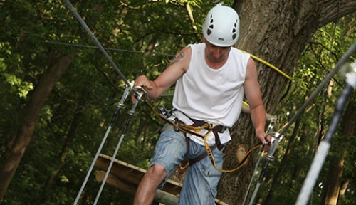 Csússz végig a fák lombjai között a Kalandpartot behálózó drótkötélpályán.