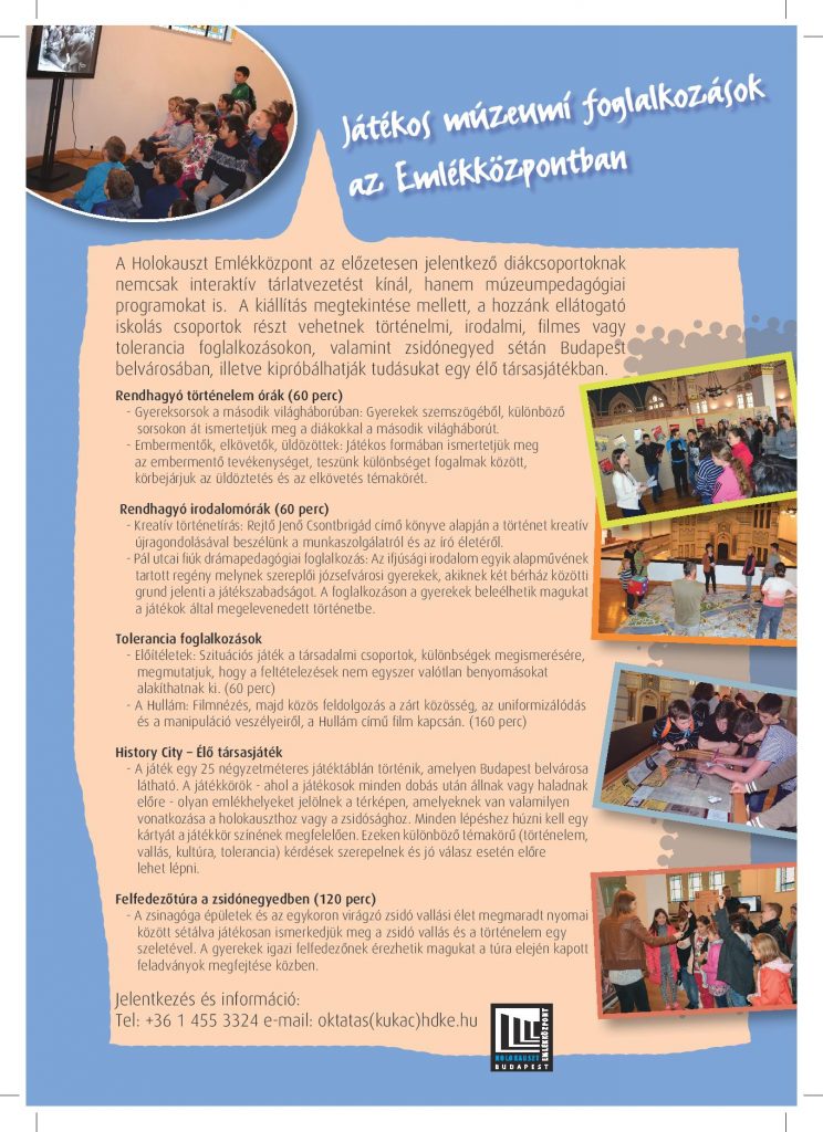 140 cm feletti testmagasságtól (felső tagozatos, középiskolás, főiskolás diákok): 5 erdei kötélpálya, ezek teljesítése 3 óra, 2500-Ft/fő, 15 fő felett 2200-Ft/fő. Minden 10 mászó diák után 1 fő kísérő tanár részére ingyenes a belépés vagy a kalandpark kötélpályáinak használata. Akik nem szeretnék a kötélpályákat kipróbálni vagy kísérőként szeretnének a kalandparkba belépni 400-Ft/fő kísérőjegyet kell váltani. [...]bővebbenPost of Kerekerdő Kalandpark on 2017 Feb 1st at 09:51:20